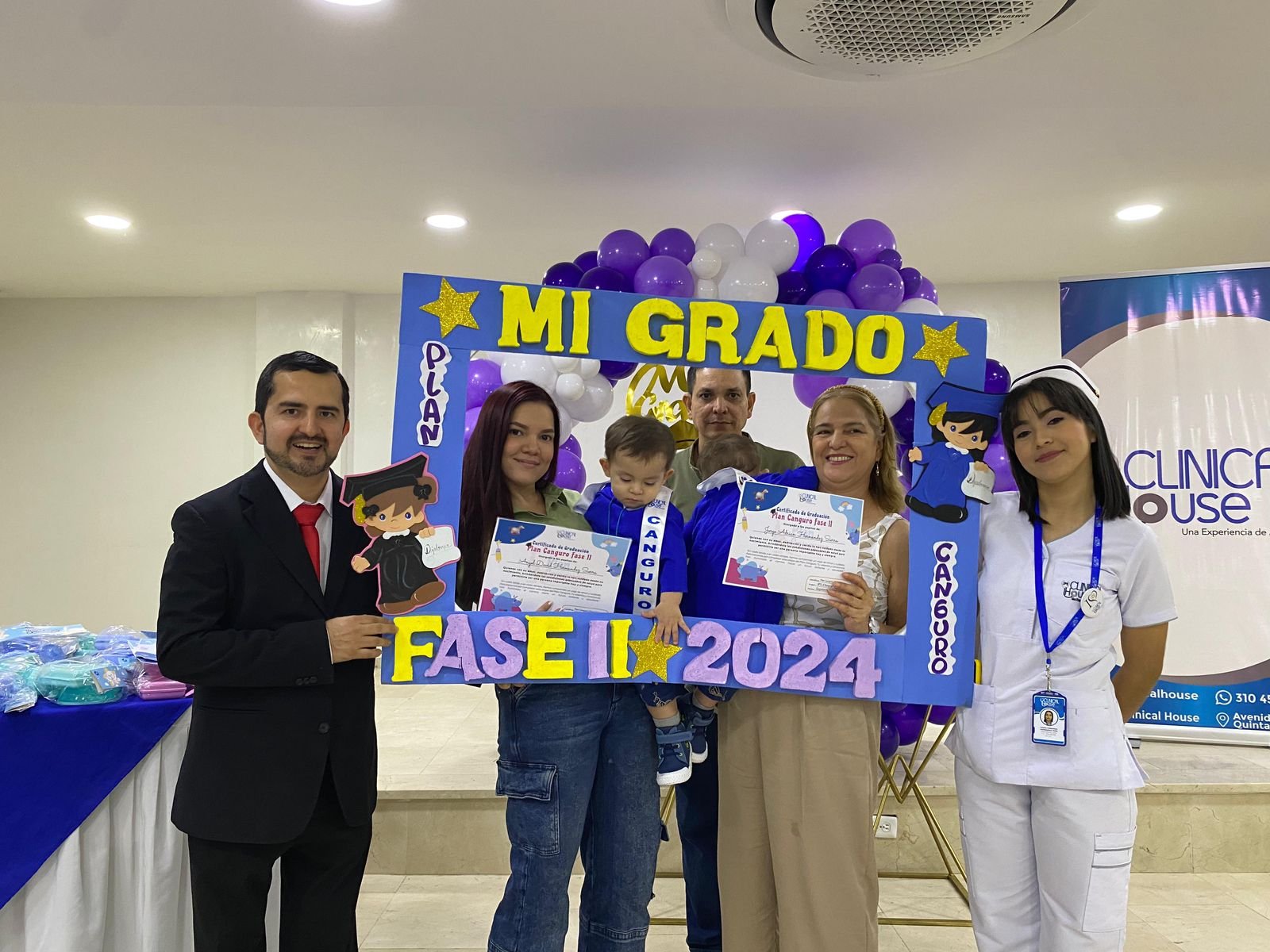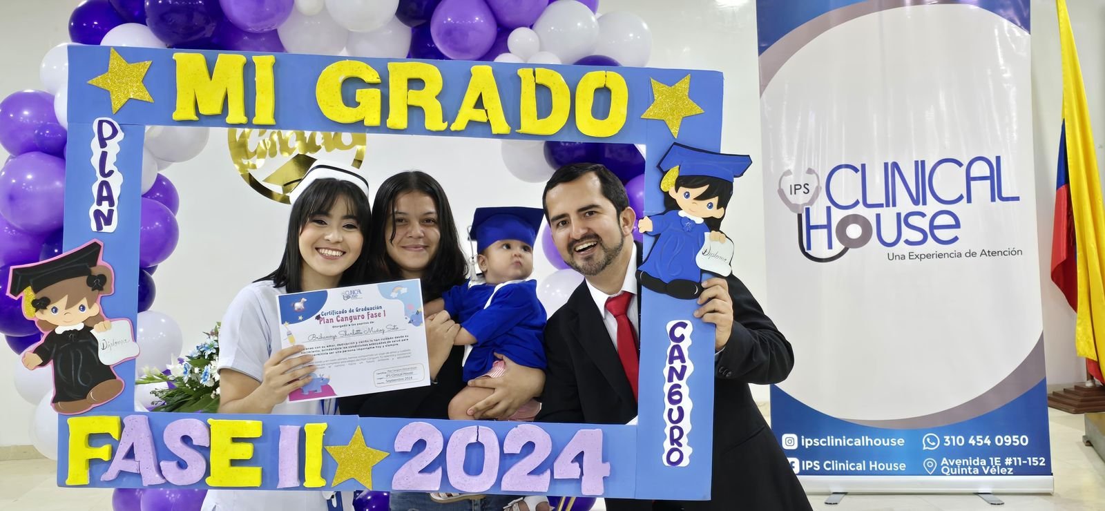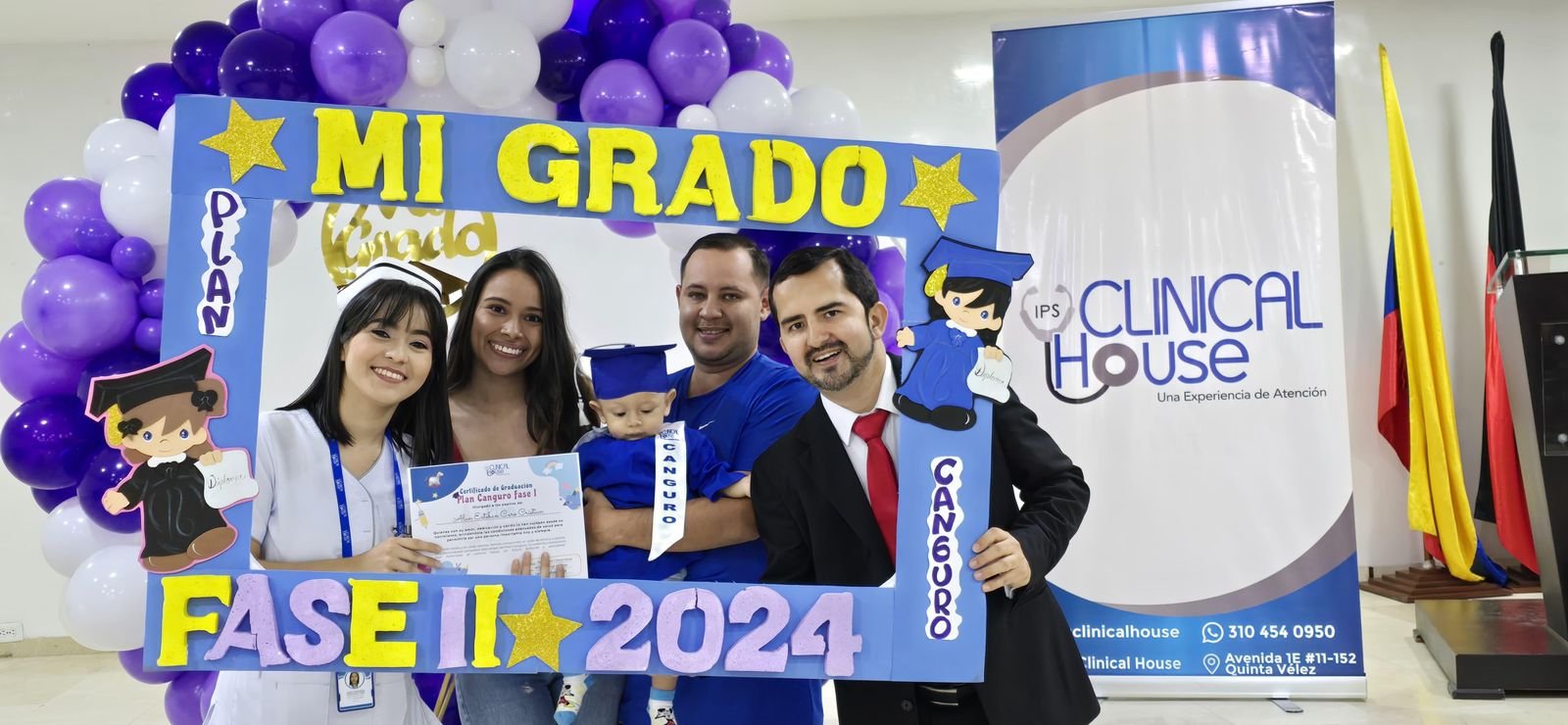 El pasado 7 de septiembre IPS Clinical House llevó a cabo la graduación del primer grupo de usuarios de fase II del Programa Plan Canguro. Este día se otorgó un reconociendo a los bebés que culminaron la fase I y II del programa, reconociendo la gran labor que ha realizado el equipo interdisciplinar y los padres de familia por contribuir a aportar de diferentes maneras al cuidado y crecimiento de cada bebé.